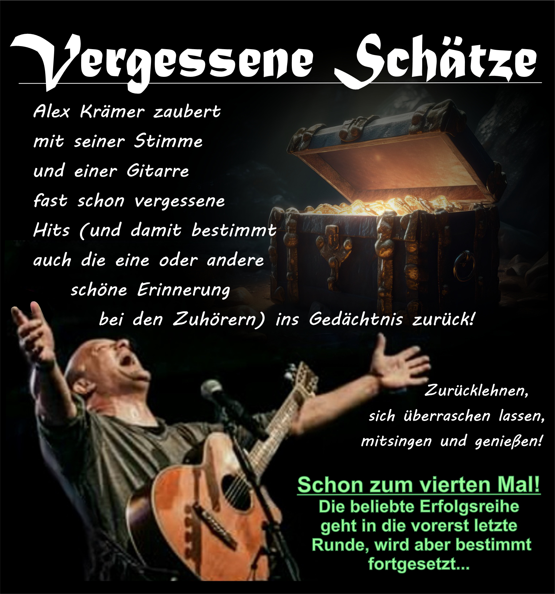 Ich schließe an diesem Abend meine Erfolgsreihe „Forgotten Treasures“, in der ich viele lange schon nicht mehr gehörte Hits und fast vergessene Klassiker zum Leben erwecke und so bestimmt auch die ein oder andere Erinnerung ins Leben rufe
